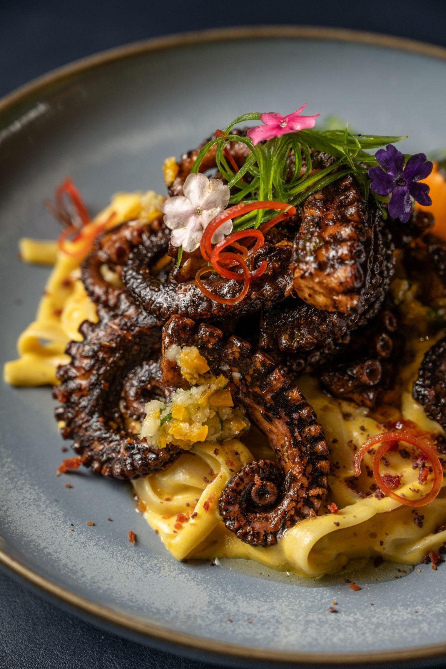 Los ingredientes locales, como el lenguado, el pulpo y los mariscos frescos, son protagonistas en los menús de los mejores restaurantes de la zona.