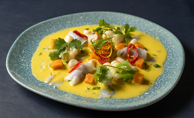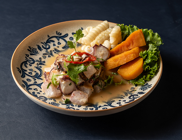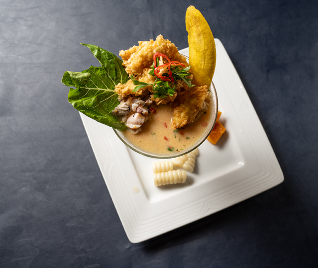 Ceviche de mariscos frescos: Preparado con los mejores productos locales, este plato resalta la frescura del pescado y los mariscos. El toque de limón, cebolla y ají amarillo le da un sabor único e inconfundible.